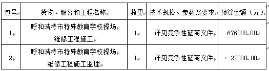 欧宝ob官方网站受呼和浩特市特殊教育学校委托,采用竞争性磋商,采购呼和浩特市特殊教育学校操场维修工程。欢迎符合资格条件的供应商前来参加。