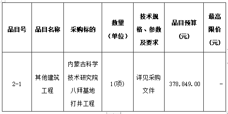 项目概况 院属各基地维修改造工程采购项目的潜在供应商应在内蒙古自治区政府采购网获取采购文件,并于2023年10月24日09时30分(北京时间)前提交响应文件。 一、项目基本情况 项目编号:NMGZCS-C-G-230947 项目名称:院属各基地维修改造工程 采购方式:竞争性磋商 预算金额:3,199,916.00元 采购需求: 合同包1(实验楼维修改造工程): 合同包预算金额:1,910,677.00元 本合同包不接受联合体投标 合同履行期限:2023年11月1日至2024年6月15日,共228日历天 合同包2(八拜基地打井工程): 合同包预算金额:378,849.00元 本合同包不接受联合体投标 合同履行期限:2023年11月5日至2024年6月15日,共224日历天 合同包3(太平庄基地维修改造工程): 合同包预算金额:910,390.00元 本合同包不接受联合体投标 合同履行期限:2023年11月5日至2024年6月30日,共239日历天 二、申请人的资格要求: 1.满足《中华人民共和国政府采购法》第二十二条规定: (1)具有独立承担民事责任的能力; (2)具有良好的商业信誉和健全的财务会计制度; (3)具有履行合同所必需的设备和专业技术能力; (4)有依法缴纳税收和社会保障资金的良好记录; (5)参加政府采购活动前三年内,在经营活动中没有重大违法记录; (6)法律、行政法规规定的其他条件。 2.落实政府采购政策需满足的资格要求: 合同包1(实验楼维修改造工程)落实政府采购政策需满足的资格要求如下: / 3.本项目的特定资格要求: 合同包1(实验楼维修改造工程)特定资格要求如下: (1)具有建设行政主管部门颁发的施工综合资质或建筑工程施工总承包乙级(含)以上资质或建筑装修装饰工程专业承包乙级(含)以上资质。(以上资质为住建部最新资质要求(2020年11月30日建市(2020)94号《住房和城乡建设部关于印发建设工程企业资质管理制度改革方案的通知》),如未申办以上资质,须具有有效期内建设行政主管部门颁发的建筑工程施工总承包叁级(含)以上资质或建筑装修装饰工程专业承包贰级(含)以上资质; (2)供应商须拟派一名项目经理,拟派项目经理须具有本企业注册的建筑工程专业贰级(含)以上注册建造师证书和有效的安全生产考核合格证书; (3)供应商具有有效的安全生产许可证书,并在人员、设备、资金等方面具有相应的施工能力; (4)单位负责人为同一人或者存在控股、管理关系的不同单位,未参加同一标段投标或者未划分标段的同一招标项目竞标。 合同包2(八拜基地打井工程)特定资格要求如下: (1)具有建设行政主管部门颁发的施工综合资质或建筑工程施工总承包乙级(含)以上资质和水利水电工程施工总承包乙级(含)以上资质。(以上资质为住建部最新资质要求(2020年11月30日建市(2020)94号《住房和城乡建设部关于印发建设工程企业资质管理制度改革方案的通知》),如未申办以上资质,须具有有效期内建设行政主管部门颁发的建筑工程施工总承包叁级(含)以上资质和水利水电工程施工总承包叁级(含)以上资质; (2)供应商须拟派一名项目经理,拟派项目经理须具有本企业注册的水利水电工程专业贰级(含)以上注册建造师证书和有效的安全生产考核合格证书; (3)供应商具有有效的安全生产许可证书,并在人员、设备、资金等方面具有相应的施工能力; (4)单位负责人为同一人或者存在控股、管理关系的不同单位,未参加同一标段投标或者未划分标段的同一招标项目竞标。 合同包3(太平庄基地维修改造工程)特定资格要求如下: (1)具有建设行政主管部门颁发的施工综合资质或建筑工程施工总承包乙级(含)以上资质。(以上资质为住建部最新资质要求(2020年11月30日建市(2020)94号《住房和城乡建设部关于印发建设工程企业资质管理制度改革方案的通知》),如未申办以上资质,须具有有效期内建设行政主管部门颁发的建筑工程施工总承包叁级(含)以上资质; (2)供应商须拟派一名项目经理,拟派项目经理须具有本企业注册的建筑工程专业贰级(含)以上注册建造师证书和有效的安全生产考核合格证书; (3)供应商具有有效的安全生产许可证书,并在人员、设备、资金等方面具有相应的施工能力; (4)单位负责人为同一人或者存在控股、管理关系的不同单位,未参加同一标段投标或者未划分标段的同一招标项目竞标。 三、获取采购文件 时间:2023年10月13日至2023年10月19日,每天上午00:00:00至12:00:00,下午12:00:00至23:59:59(北京时间,法定节假日除外) 地点:内蒙古自治区政府采购网 方式:在线获取。获取采购文件时,需登录“政府采购云平台”,按照“执行交易→应标→项目应标→未参与项目”步骤,填写联系人相关信息确认参与后,即为成功“在线获取”。 售价:免费获取 四、响应文件提交 截止时间:2023年10月24日 09时30分00秒(北京时间) 地点:内蒙古自治区政府采购网(政府采购云平台) 五、开启 时间:2023年10月24日 09时30分00秒(北京时间) 地点:呼和浩特市赛罕区锡林南路恩和大厦11楼1102室 六、公告期限 自本公告发布之日起3个工作日。 七、其他补充事宜 无 八、凡对本次采购提出询问,请按以下方式联系。 1.采购人信息 名 称:内蒙古科学技术研究院 地 址:呼和浩特市赛罕区山丹街2号内蒙古科技大厦 联系方式:0471-5291266 2.采购代理机构信息 名 称:欧宝ob官方网站 地 址:内蒙古自治区呼和浩特市赛罕区呼和浩特市赛罕区锡林南路恩和大厦1101.1102 联系方式:0471-6235889 3.项目联系方式 项目联系人:张旭东、耿娟