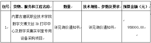 项目名称:内蒙古建筑职业技术学院数字文博文创3D打印中心及数字采集实训室专用设备采购项目