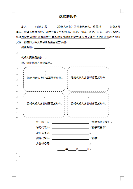 投标地点:呼和浩特市锡林南路恩和大厦11层1102室;