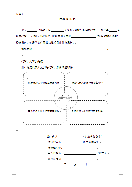 (1)法定代表人授权委托书、法定代表人及委托代理人身份证;
