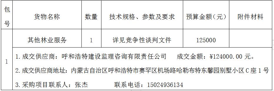 内蒙古大青山国家级自然保护区管理局造林项目监理服务成交结果公告