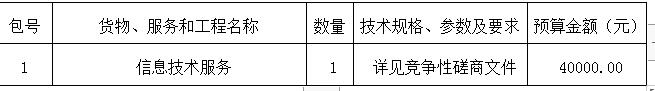 包号 货物、服务和工程名称 数量 技术规格、参数及要求 预算金额(元)