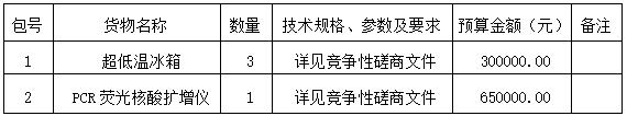 项目名称:超低温冰箱、PCR荧光核酸扩增仪