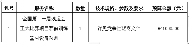 项目名称:全国第十一届残运会正式比赛项目赛前训练器材设备采购