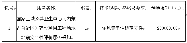 项目名称:国家区域公共卫生中心(内蒙古自治区)建设项目工程场地地震安全性评价服务采购