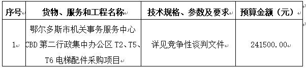 项目名称:鄂尔多斯市机关事务服务中心CBD第二行政集中办公区T2、T5、T6电梯配件采购项目