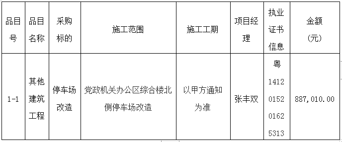 合同包1(党政机关办公区综合楼北侧停车场改造):