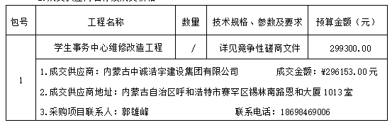内蒙古师范大学盛乐校区学生事务中心维修改造工程成交结果公告