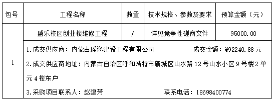 内蒙古师范大学盛乐校区创业楼维修工程成交结果公告