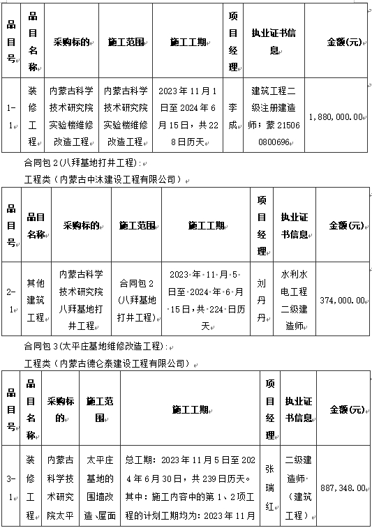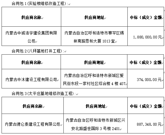 合同包3(太平庄基地维修改造工程):1.0648万元。收取对象:采购人。