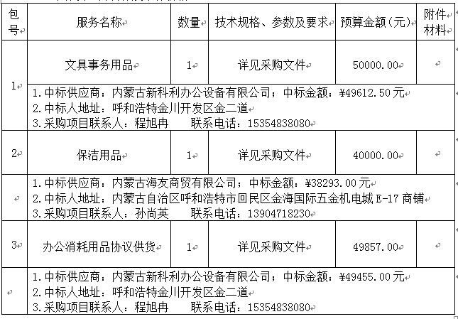 内蒙古自治区福利彩票发行管理中心文具事务用品、保洁用品、