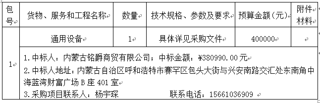 欧宝ob官方网站受中共土默特左旗纪律检查委员会的委托,于2018年11月19日在内蒙古自治区政府采购网(http://www.nmgp.gov.cn)、呼和浩特市政府采购网(http://www.hhgp.gov.cn)、呼和浩特市土默特左旗政府采购网(http://111.235.156.218:7010)、中国招标投标公共服务平台(http://www.cebpubservice.com/)、内蒙古招标投标公共服务平台(http://www.nmgztb.com.cn)和欧宝ob官方网站网(http://www.runningriverkennels.com)上发布招标公告。于2018年12月11日就中共土默特左旗纪律检查委员会办公配套设备采购(UPZCCG-181104)采用公开招标方式进行采购。现就本次采购的中标结果公告如下: