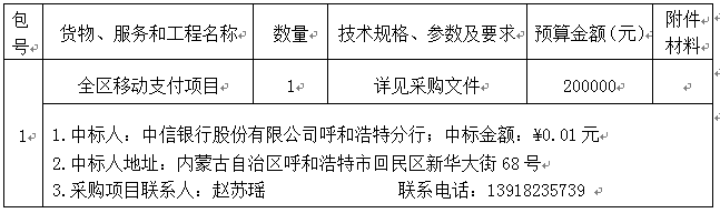 1.采购项目名称:内蒙古自治区福利彩票发行管理中心全区移动支付项目