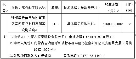 1.采购项目名称:呼和浩特留置场所留置区室内软包材料及配套设施采购