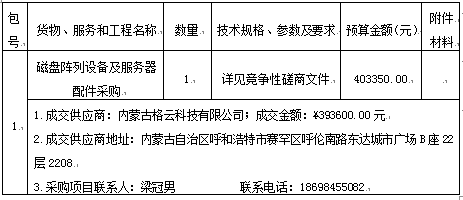 呼和浩特市档案馆磁盘阵列设备及服务器配件采购