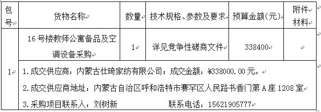 内蒙古师范大学16号楼教师公寓备品及空调设备采购