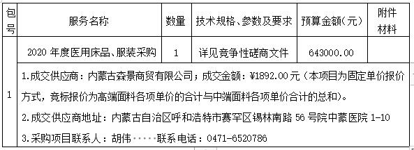 内蒙古自治区第四医院2020年度医用床品、服装采购