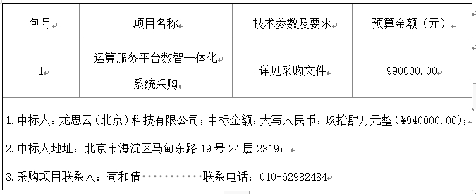 欧宝ob官方网站受内蒙古科学技术研究院的委托,于2024年4月12日在中国招标投标公共服务平台(http://www.cebpubservice.com/)、内蒙古招标投标公共服务平台(http://www.nmgztb.com.cn)和欧宝ob官方网站网(http://www.runningriverkennels.com)上发布采购公告。于2024年5月6日就内蒙古科学技术研究院运算服务平台数智一体化系统采购(采购文件编号:UPZBCG-240408)采用公开招标方式进行招标。现就本次采购的中标结果公告如下:
