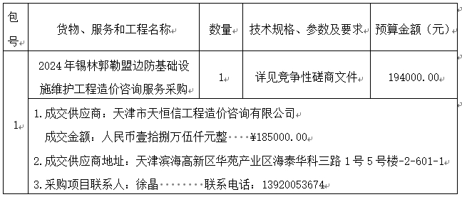 1.采购项目名称:2024年锡林郭勒盟边防基础设施维护工程造价咨询、监理服务采购