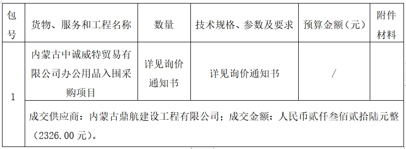 采购人名称:内蒙古中诚威特贸易有限公司