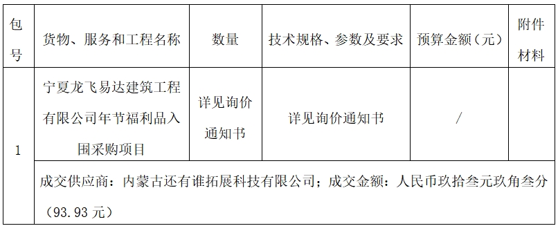 一、采购项目名称:宁夏龙飞易达建筑工程有限公司年节福利品入围采购项目