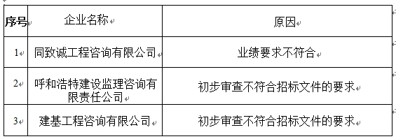 有 3 名投标人未通过,单位为:同致诚工程咨询有限公司、呼和浩特建设监理咨询有限责任公司、建基工程咨询有限公司。