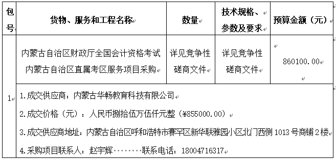 1.采购项目名称:内蒙古自治区财政厅全国会计资格考试内蒙古自治区直属考区服务项目采购