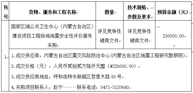 1.采购项目名称:国家区域公共卫生中心(内蒙古自治区)建设项目工程场地地震安全性评价服务采购
